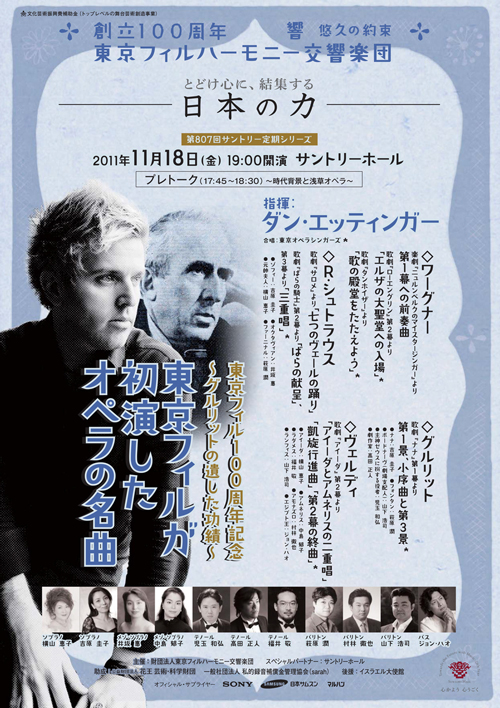 映像は東京フィルハーモニー交響楽団創立100周年を迎えた2011-2012年シーズンに行われた第807回サントリー定期シリーズ(2011年11月18日[金])を収録したものです。この公演はR. シュトラウスの『サロメ』(日本初演)のほかワーグナーの『ローエングリン』(日本初演)やヴェルディの『アイーダ』(日本人による初上演)など、東京フィルが初演したオペラの中から名曲を集めたプログラムです。